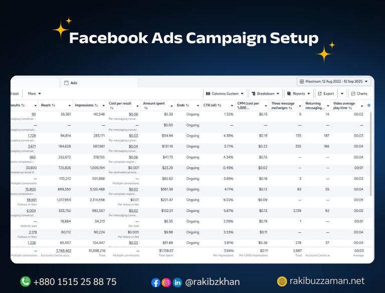 The next step is campaign setup, where I create ads based on your business goals to ensure maximum impact. Proper setup is crucial because it determines how effectively your ads reach the right audience, optimize spending, and deliver measurable results. A well-structured campaign sets the foundation for performance, ROI, and successful scaling.